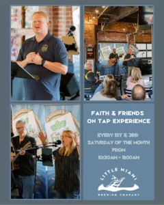 Join Faith and Friends on Tap Experience at Little Miami Brewing Company every 1st and 3rd Saturday of every month from 10:30am-11:00am for a gathering of people who explore faith, growth and spiritual wellness through music and guided discussion over food and beverages.