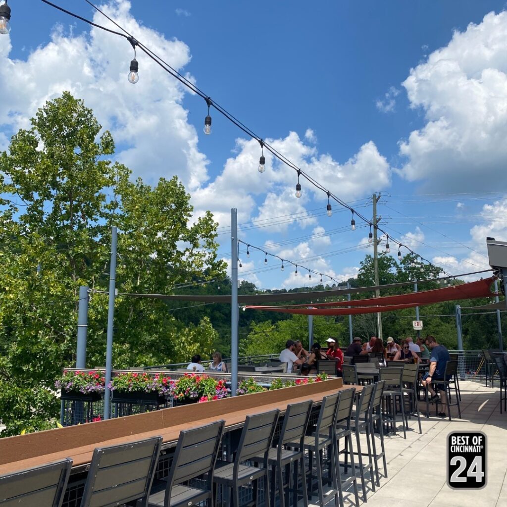 Our patio sits right along the Little Miami River and the Scenic Trail. You can grab a seat at a table, or pull up an Adirondack chair and put your feet up. We have an upstairs rooftop deck with a different view of the water, fire pits scattered around for when the sun goes down, and a heated patio for cooler days.