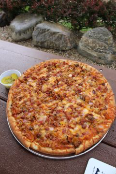 Red sauce base, mozzarella, pepperoni, sausage, & bacon
