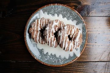 A unique mashup between an American donut and a Spanish Churro, 3 tossed in cinnamon sugar and drizzled with icing