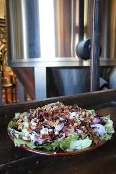 Romaine, red onions, walnuts, cranberries, bacon bits, bleu cheese crumbles, & gorgonzola dressing