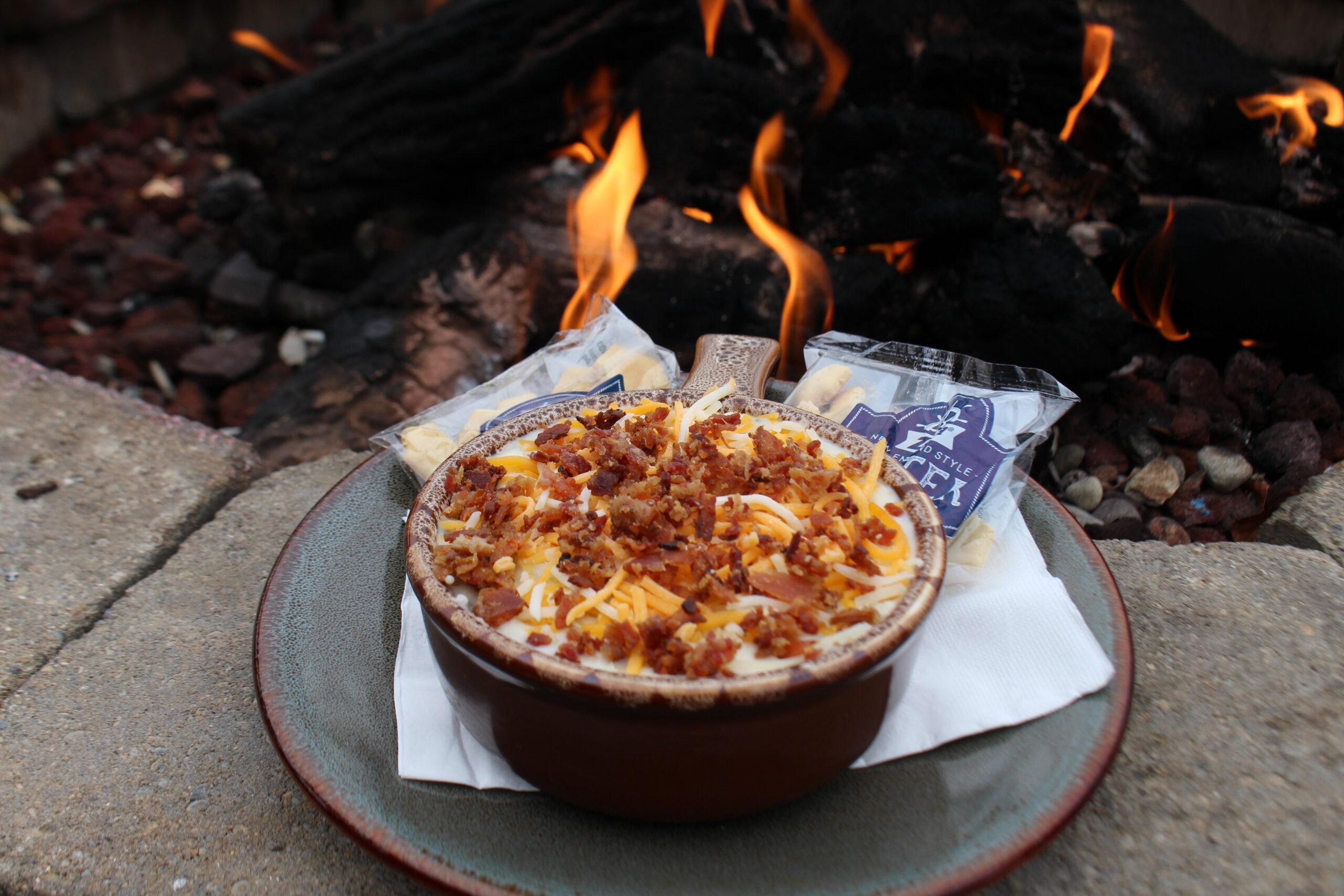 Beer cheese base, monterey jack-cheddar, egg, bacon and sausage