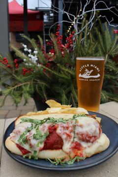 3 delicious homemade meatballs covered in marinara sauce, melted provolone cheese, a creamy garlic mayo, and fresh basil, served with kettle chips.