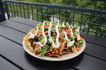 Tortilla chips loaded with chili, beer cheese, sour cream, lettuce, jalapenos, & diced tomatoes