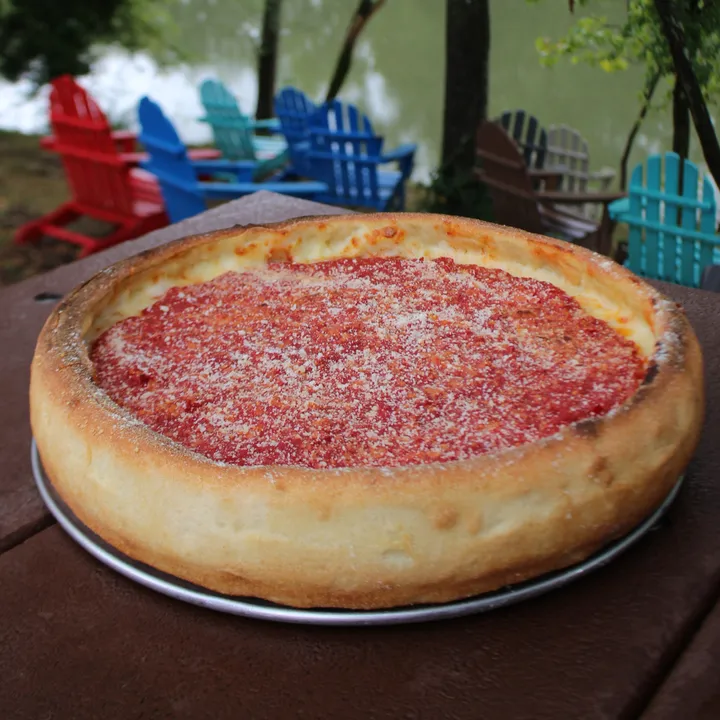 Red Sauce, Mozzarella, Pepperoni, Sausage, Bacon.) Please allow additional cook time for Deep Dish. No substations. No additional toppings allowed. Quantities are very limited each day.